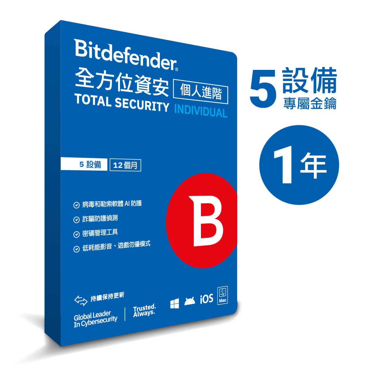 / Bitdefender 必特防毒 Total Security 全方位資安 個人進階版( 跨平台適用 )序號版
